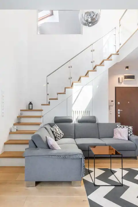 - najwyższy punkt w mieszkaniu wynosi 6m, co potęguję przestrzeń;
