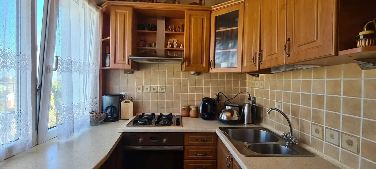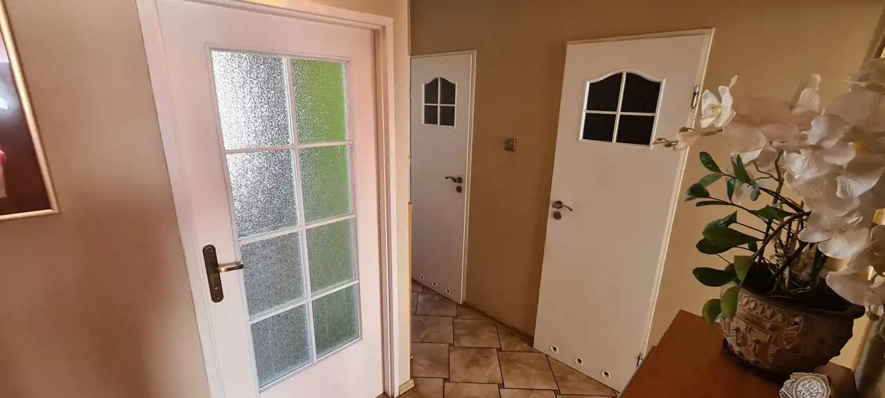 Pokoje o powierzchniach : salon ok. 14,9 m.kw z wyjściem na balkon i dwa mniejsze o pow. ok. 9,7 m.kw oraz 8 m.kw, kuchnia o powierzchni ok. 5,2 m.kw, łazienka o powierzchni ok. 3,5 m.kw, osobne wc oraz przedpokój o powierzchni ok. 6,6 m.kw. W dwóch pokojach na podłodze położone są panele podłogowe oraz w jednym z pokoi wykładzina dywanowa, na ścianach gładź gipsowa, pomalowane. Kuchnia widna wykończona glazurą, wyposażona w meble oraz sprzęt agd (kuchenkę gazową, piekarnik elektryczny, lodówkę, zlewozmywak,okap). Łazienka wyposażona w umywalkę, kabinę prysznicową, pralkę, zabudową meblową na wymiar wykończona glazurą i terakotą, w przedpokoju szafa. Mieszkanie w pełni umeblowane.