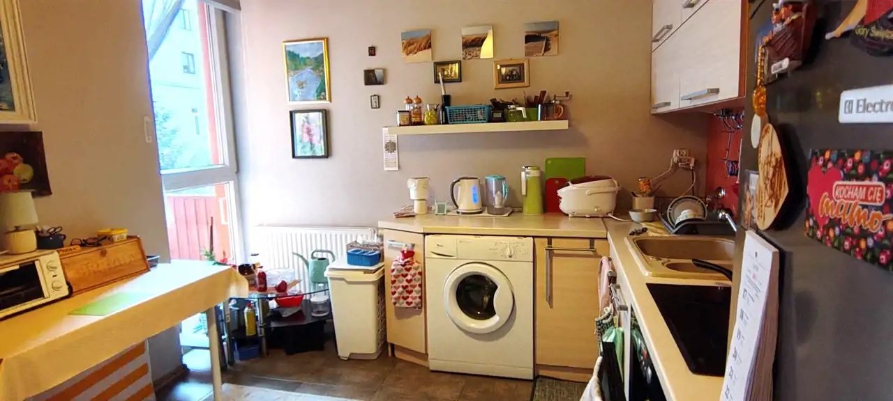 Oddzielna, przestronna i wyposażona kuchnia (4 m²) z wyjściem na balkon. W kuchni można zorganizować jadalnię.