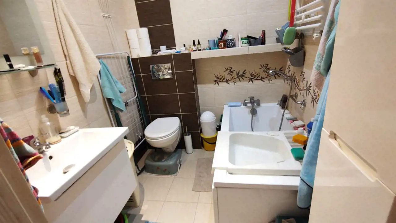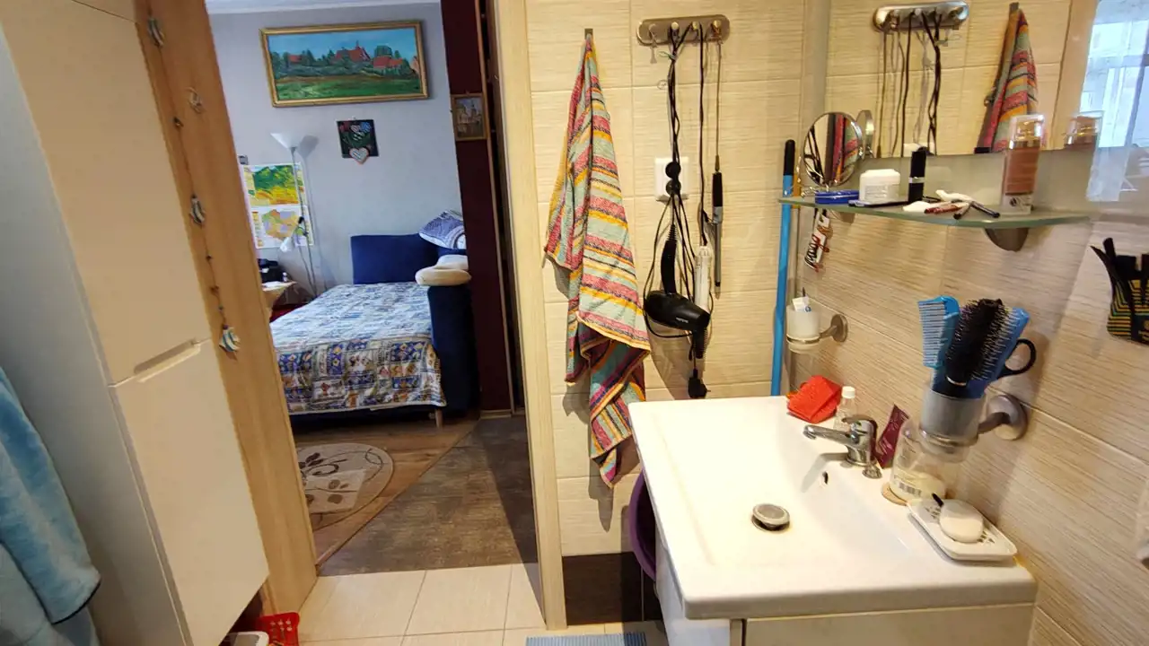 Obszerna łazienka (ok. 3,5 m²) z wanną, umywalką, wc. Jest to mieszkanie idealne dla singli lub par, którzy cenią komfort i dogodną lokalizację.