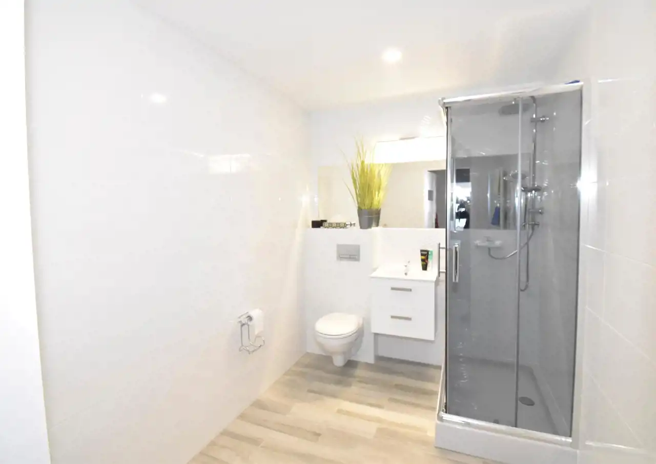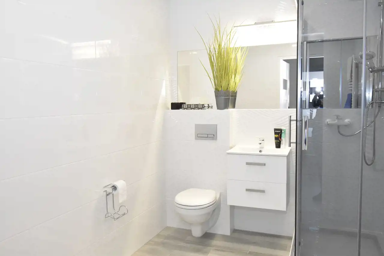Ogrzewanie oraz ciepła woda zapewnia piec gazowy. Z okien rozpościera się widok na zieleń miejską oraz budynek urzędu miasta.