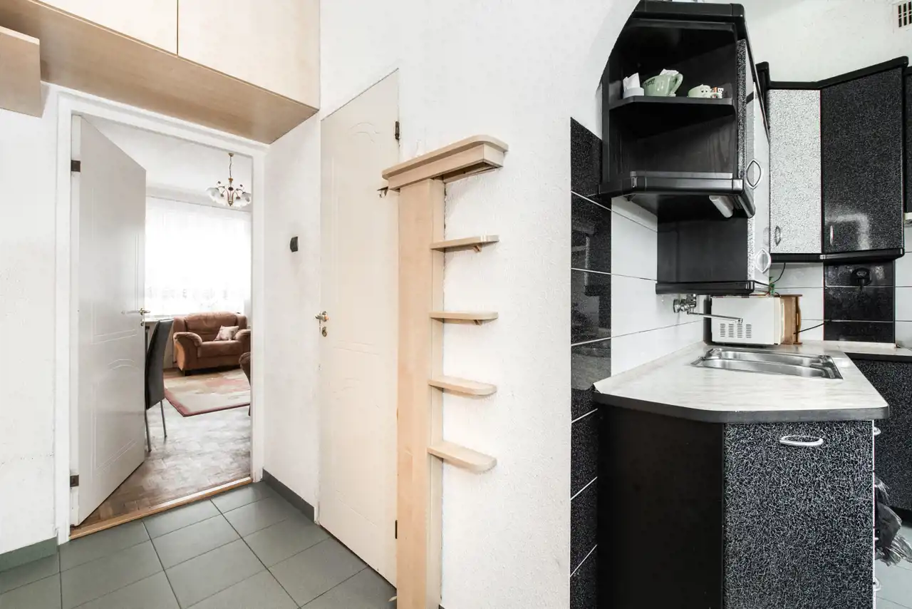 Mieszkanie o powierzchni użytkowej 48,8 m2 znajduję się na pierwszym piętrze w dwupiętrowej kamienicy z 1928 roku na Mokotowie przy ul. Zacisznej, koło skweru "Starszych Panów" . Wysokość pomieszczeń wynosi aż 3m!