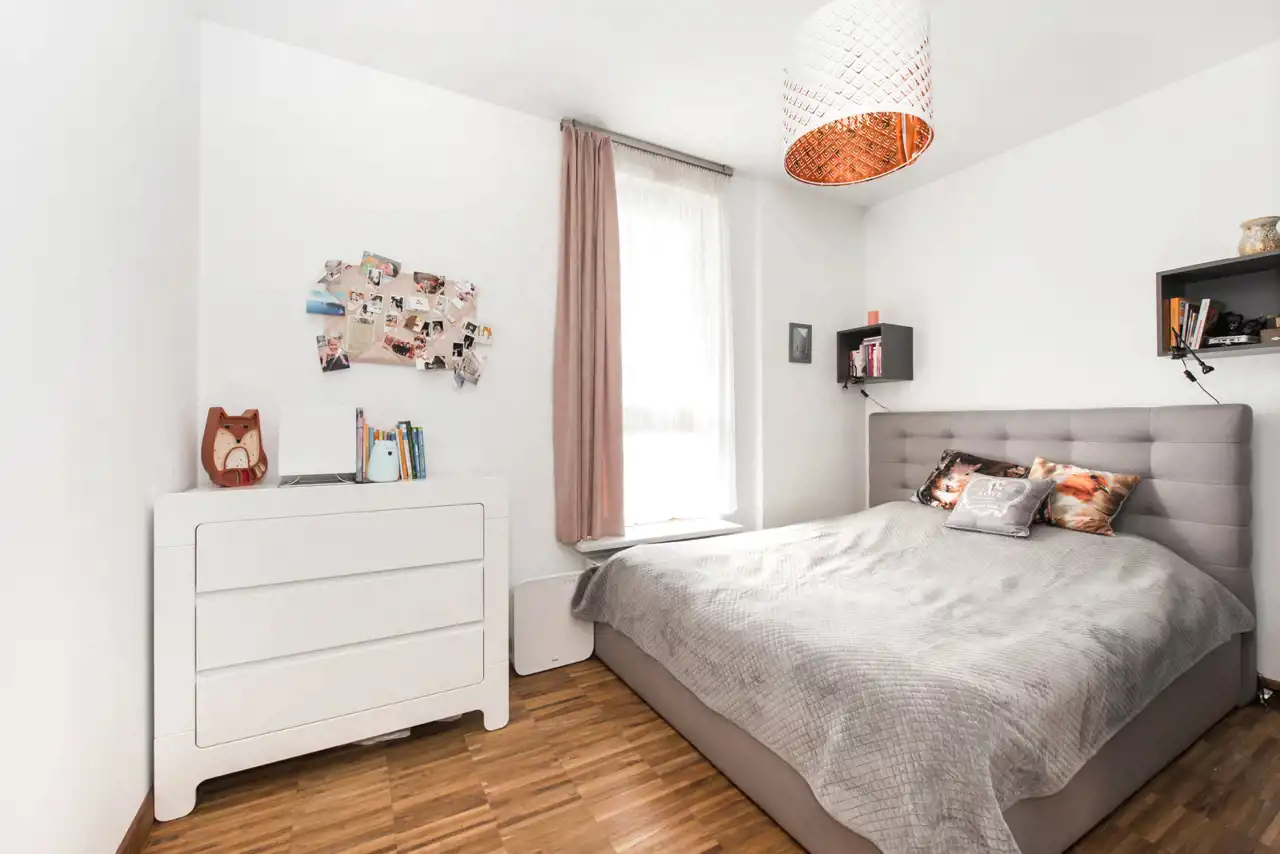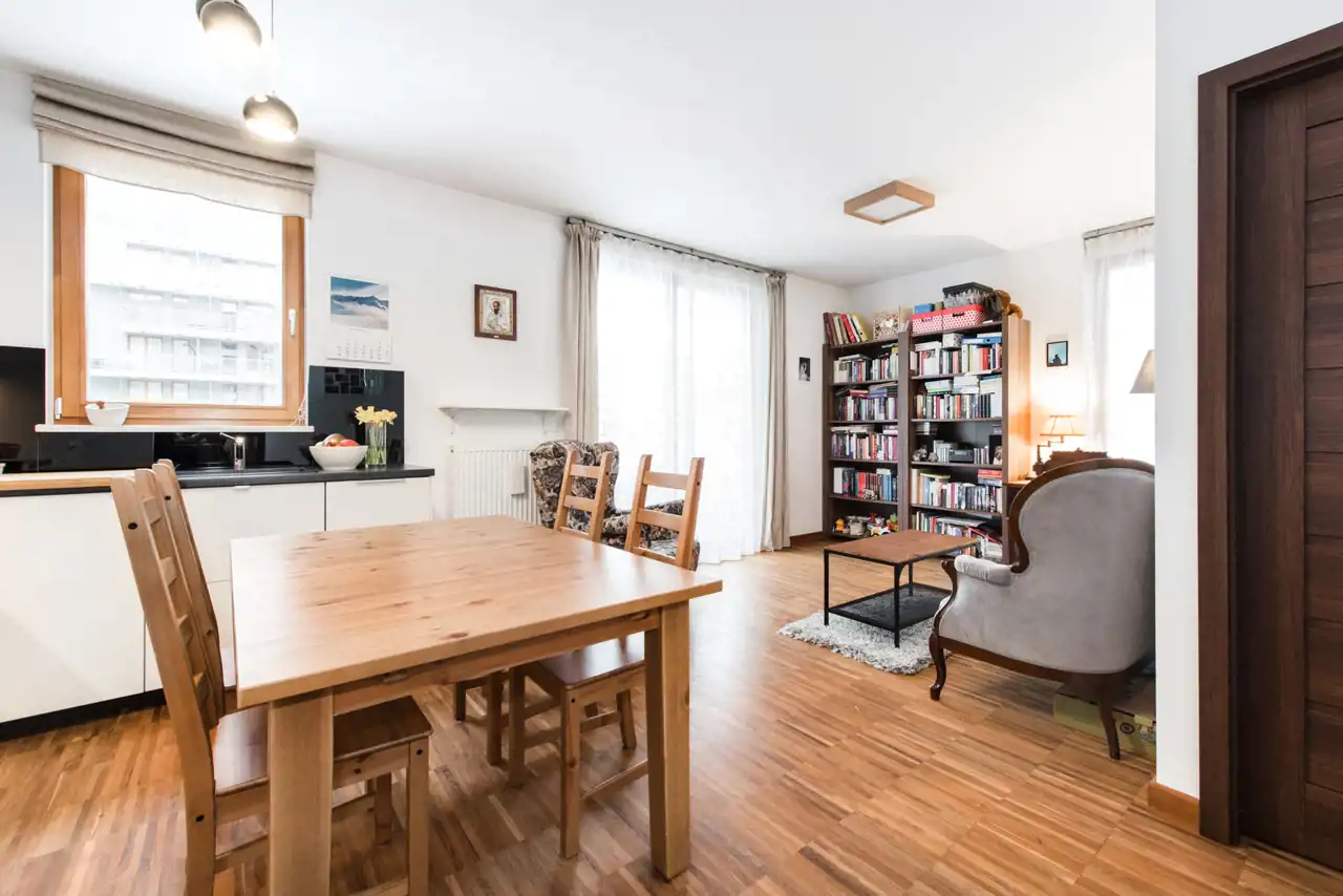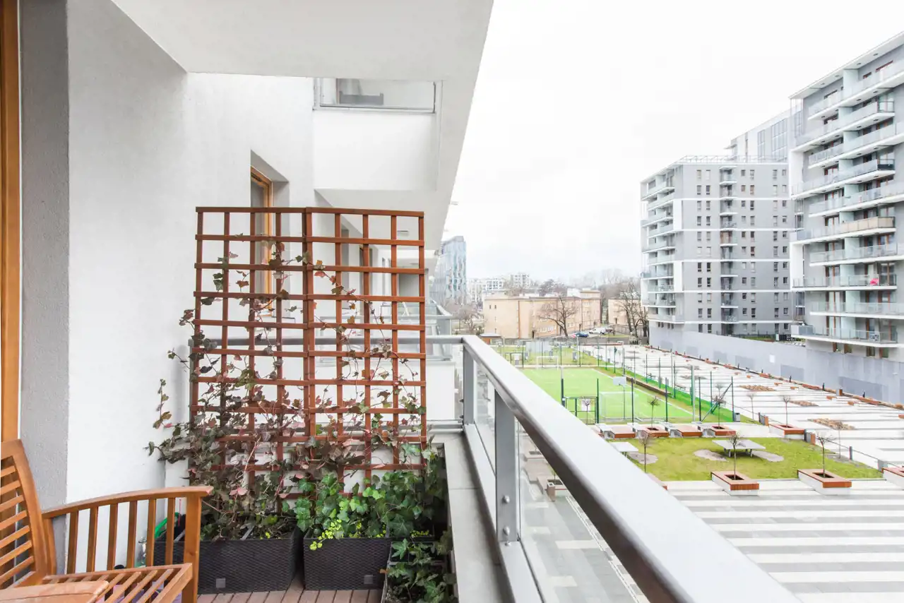 Komfortowy i przytulny apartament z pięknym narożnym tarasem, znajdujący się przy ulicy Marcina Kasprzaka na Woli. Mieszkanie mieści się na 3 piętrze w nowoczesnym 8-piętrowym apartamentowcu z 2016 roku.