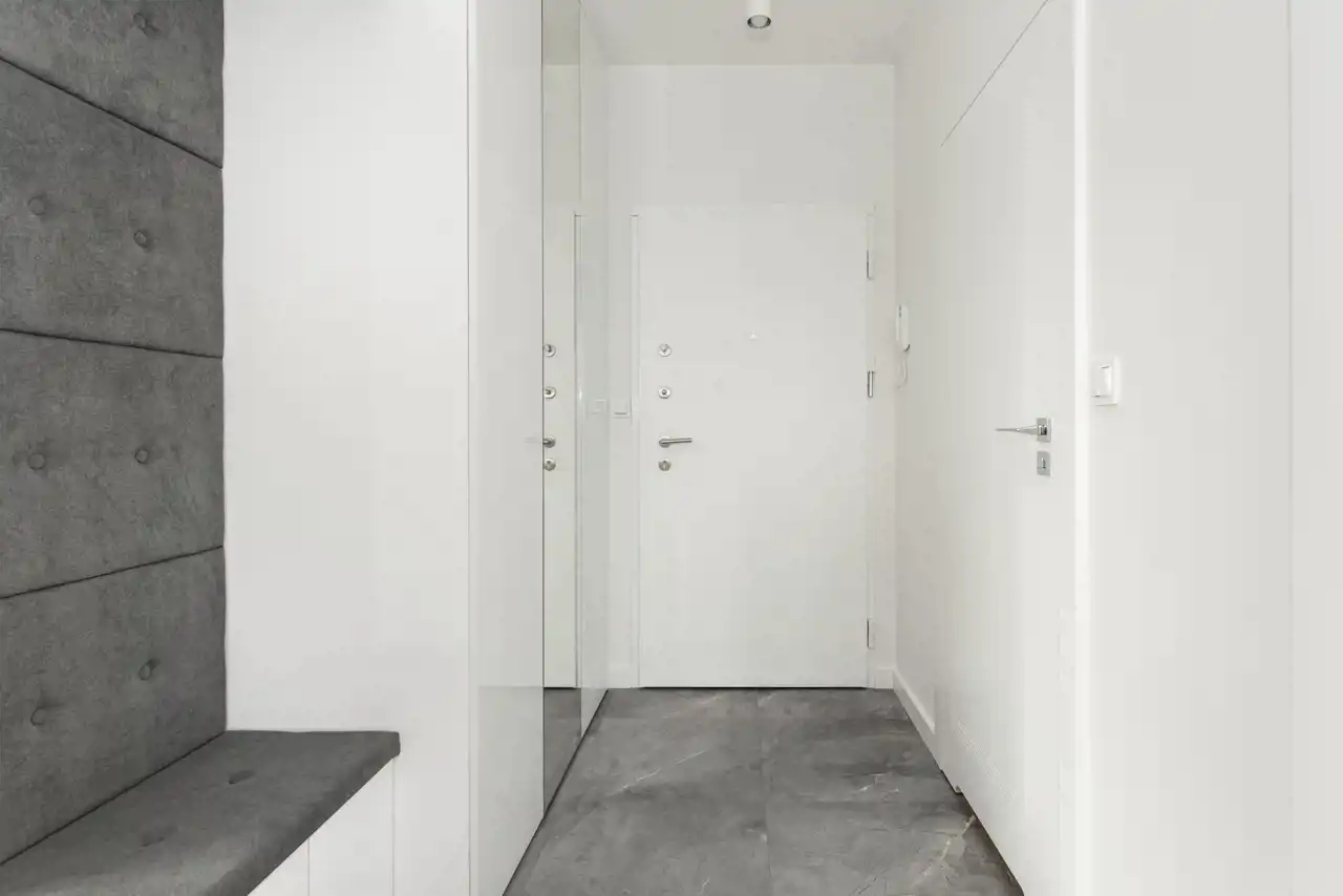 - przedpokój (6,89 m2) z pojemną szafą w zabudowie wraz z siedziskiem