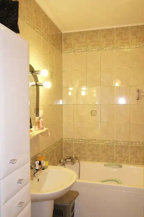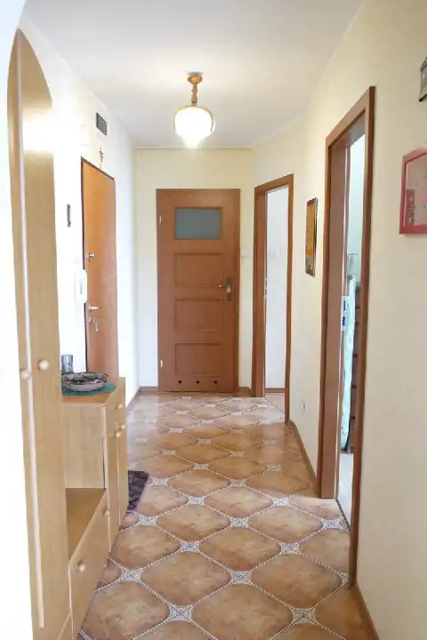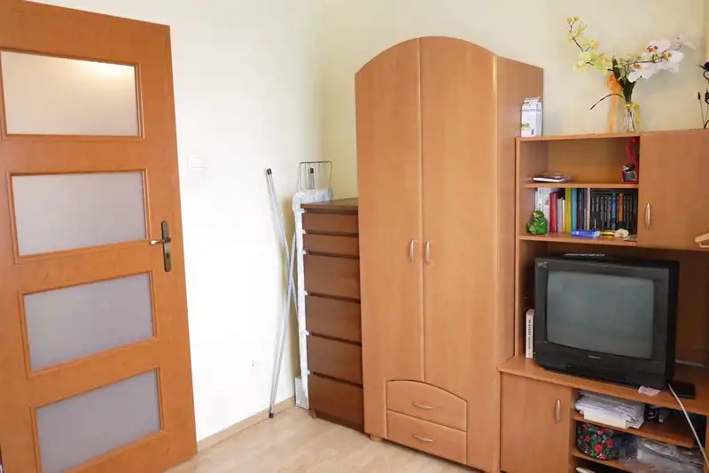 Do dyspozycji Najemcy jest wyposażony pokój dzienny. Oddzielna kuchnia z jadalnią z zabudową na wymiar oraz wyposażeniem AGD. Umeblowana sypialnia z meblościanką i łóżkiem dwuosobowym. W pokoju dziennym pozostaje sofa skórzana + 2 fotele, ława, meble systemowe z TV. W przedpokoju znajduje się szafa garderobiana. Nowoczesna łazienka z wanną, umeblowaniem i pralką.