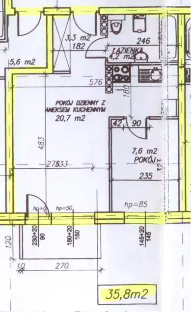 - Charakterystyka mieszkania 35.8 m2, 2 pokoje