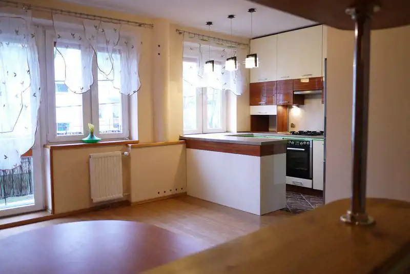 Atrakcyjna oferta mieszkania 3-pokojowego z aneksem kuchennym o wysokim standardzie wykończenia o powierzchni użytkowej 54m2. Lokal położony na pierwszym piętrze na ogrodzonym terenie w budynku z nowej cegły. Do dyspozycji Najemcy jest przestronny pokój dzienny z otwartym aneksem kuchennym z zabudową na wymiar oraz wyposażeniem AGD (typu kuchnia gazowa z piekarnikiem Mastercook, zmywarka Ariston, lodówka ozonowana Sharp, pochłaniacz Gorenje). Dwie oddzielne, wygodne sypailnie, jedna wyposażona. Aktualnie w pokoju dziennym znajduje się stół z mozliwością doposażenia mieszkania. Komfortowo i nowocześnie wyposażona łazienka z kabiną prysznicową, umeblowaniem. Pomieszczenie gospodarcze z garderobą i pralką. W przedpokoju szafa elegancka garderobianka. Standard wykończenia: ściany pokryte gładzią szpachlową, podłogi wyłożone podłogą bambusową w salonie oraz panelami w sypialniach. Wspólnota prężna, klatka schodowa zadbana. Miejsce parkingowe pod budynkiem lub parking strzeżony w bliskiej odległości. Czynsz najmu za lokal mieszkalny w kwocie 1.250 zł na miesiąc. Dodatkowe opłaty: czynsz administracyjny z zaliczką na CO 250 zł oraz zużycie wody, prądu i kablówki. Kaucja zwrotna w wysokości 3.000 zł .