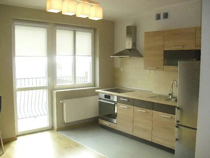 Lokal położony na III-cim piętrze w nowo pobudowanym budynku z cegły w Centrum miasta na terenie ogrodzonym. Do dyspozycji Najemcy jest przestronny pokój dzienny z otwartym aneksem kuchennym z zabudową na wymiar oraz wyposażeniem AGD (typu płyta ceramiczna, piekarnik, zmywarka, lodówka, pochłaniacz wszystkie firmy Whirpool). Oddzielna sypialnia z sofą z funkcją spania oraz komoda. W pokoju dziennym pozostanie sofa z funkcją spania + stół z krzesłami. Komfortowo i nowocześnie wyposażona łazienka z wanną, umeblowaniem i pralką. Standard wykończenia: ściany pokryte gładzią szpachlową, podłogi wyłożone panelami, okna z roletami. Nowoczesna architektura budynku w standardzie europejskim, teren ogrodzony, bezpieczny. Miejsce parkingowe przed budynkiem. Czynsz najmu za lokal mieszkalny w kwocie 1.300 zł na miesiąc. Dodatkowe opłaty eksploatacyjne: czynsz administracyjny z zaliczką na CO - ok. 150 zł + woda i prąd co 2-gi m-c wg wskazań licznika. Kaucja zwrotna w wysokości 2-miesięcznego czynszu najmu. Oferta do dyspozycji Najemcy od zaraz!