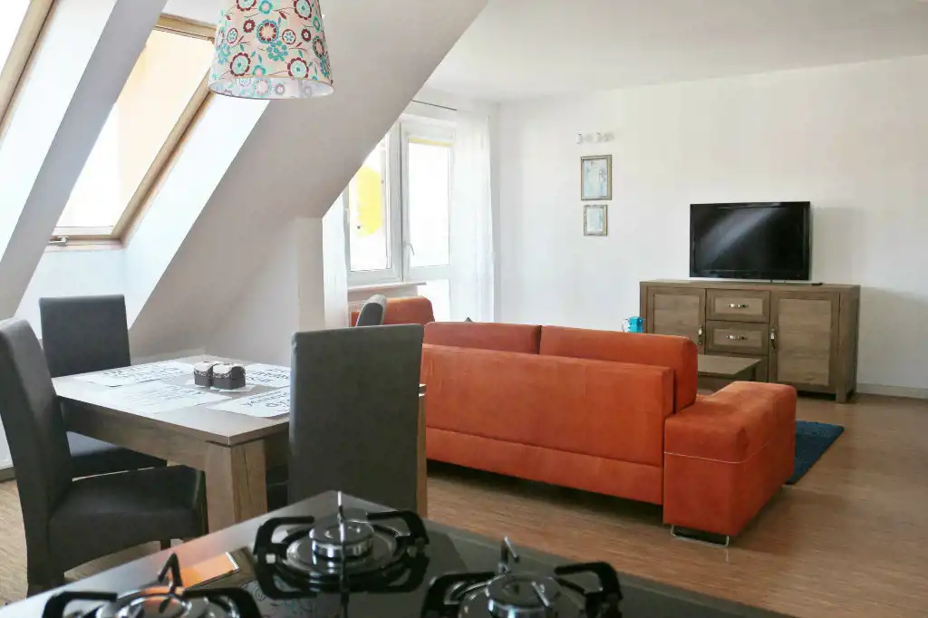 Lokal położony na trzecim piętrze w budynku z cegły na kameralnym Osiedlu Solno. Do dyspozycji Najemcy jest przestronny pokój dzienny z otwartym aneksem kuchennym z zabudową na wymiar oraz wyposażeniem AGD (typu płyta gazowa, piekarnik, zmywarka, lodówka, pochłaniacz). Dwie oddzielne sypialnie: pokój dziecięcy- kanapa, biurko młodzieżowe, meble ; sypialnia – łóże małżeńskie, komoda, stoliczki nocne. W pokoju dziennym pozostaną dwie sofy, stół z krzesłami, szafa na garderobę, komody. Komfortowo i nowocześnie wyposażona łazienka z kabiną prysznicową, umeblowaniem i pralką. W przedpokoju szafa 2-drzwiowa z lustrem na garderobę. Standard wykończenia: ściany pokryte gładzią szpachlową, podłogi wyłożone panelami, okna PCV wyjściem na balkon typu loggia.