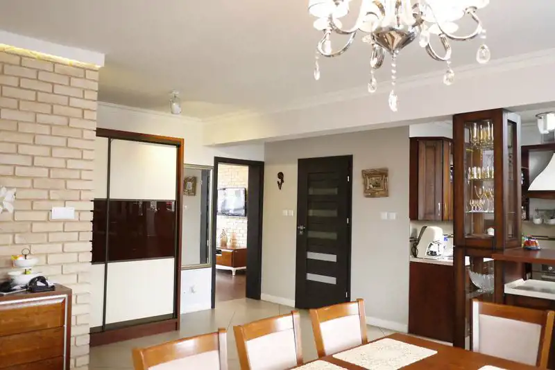 ! DO WYNAJĘCIA Luksusowa oferta apartamentu dwupoziomowego 4-pokojowego o powierzchni 95,80 m2 położonego na III-cim piętrze w budynku z nowej cegły na terenie ogrodzonym w Centrum miasta. Eksponowana GALERIA ZDJĘĆ z trwałym wyposażeniem wliczona w cenę apartamentu, pozostałe wyposażenie do uzgodnienia!!! Na uwagę zasługuje nowatorski, klasyczny styl wykończenia lokalu z zastosowaniem najnowszych trendów w aranżacji wnętrza. Pierwszy poziom lokalu obejmuje otwartą część dzienną, w tym przedpokój, jadalnię z otwartym aneksem kuchennym, salon i toaletę. Aneks kuchenny wyposażony jest w stylową, komfortową zabudowę na wymiar oraz wysokiej jakości urządzenia AGD (zmywarka, płyta indukcyjna, pochłaniacz, kuchnia mikrofalowa) renomowanej firmy: Ariston. Wyrazista kolorystyka deseni wenge/orzech z ciepłymi pastelami podłóg wykonanych z gresu włoskiego oraz ciemnych paneli w salonie nadają niepowtarzalny urok wnętrz. W przedpokoju została zaprojektowana zabudowa KOMANDOR, która w istotny sposób zapewnia komfort w codziennym użytkowaniu (do uzgodnienia za dodatkową opłatą). Przepiękna łazienka z nową armaturą wraz z doskonale wypracowanymi szczegółami zapewni komfort i przyjemny relaks podczas kąpieli. Na drugi poziom prowadzą efektowne drewniane schody w kolorze bieli i wenge. Sypialnia zaaranżowana w nowoczesnym, harmonijnym stylu połączona z odrębną garderobą oraz przestronny pokój dziecięcy z umeblowaniem wbudowanym na wymiar. Niskie koszty eksploatacji to podstawowy atut lokalu (czynsz regulowany), stacja uzdatniania wody na wyposażeniu budynku. Wspólnota prężna i rozwojowa. Możliwość wynajęcia miejsca parkingowego pod budynkiem za niedużą opłatą. Idealna inwestycja dla osób poszukujących gotowego mieszkania do zamieszkania.