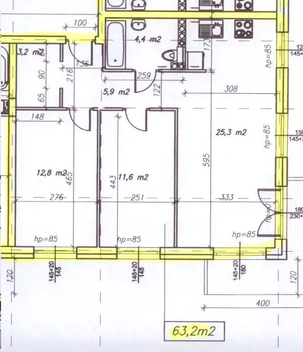 - Charakterystyka mieszkania 63.2 m2, 3 pokoje