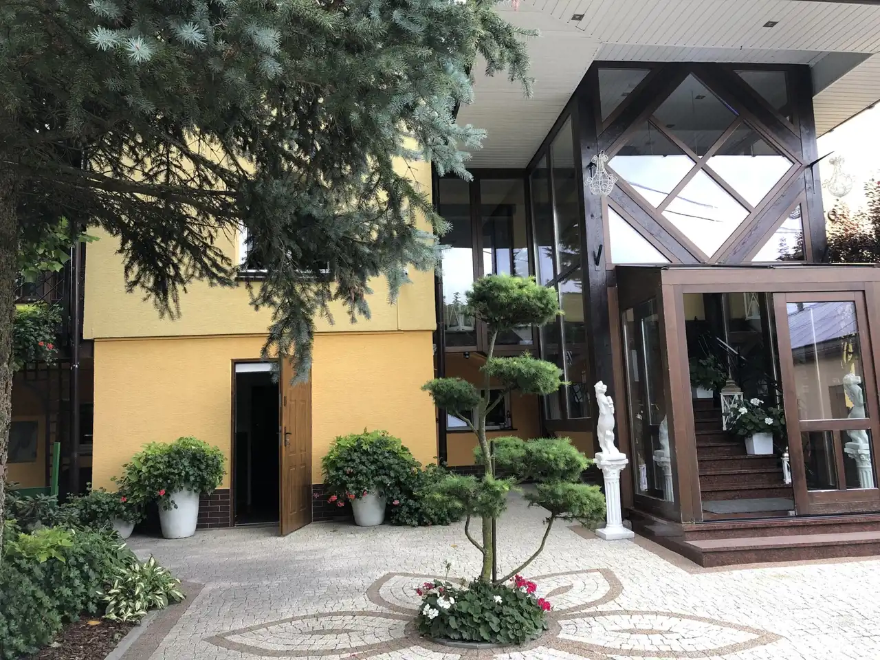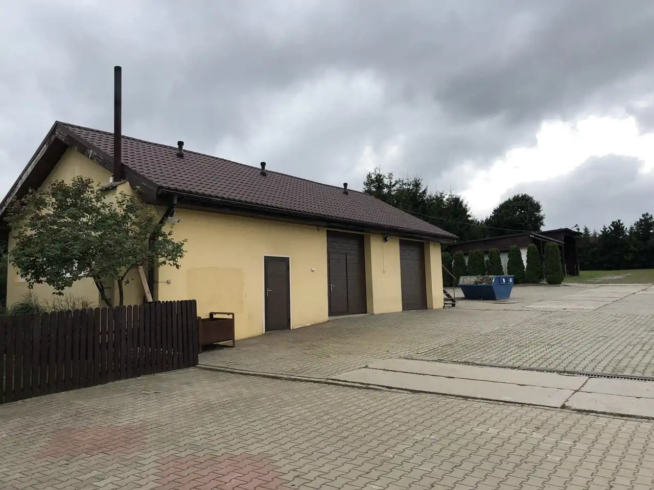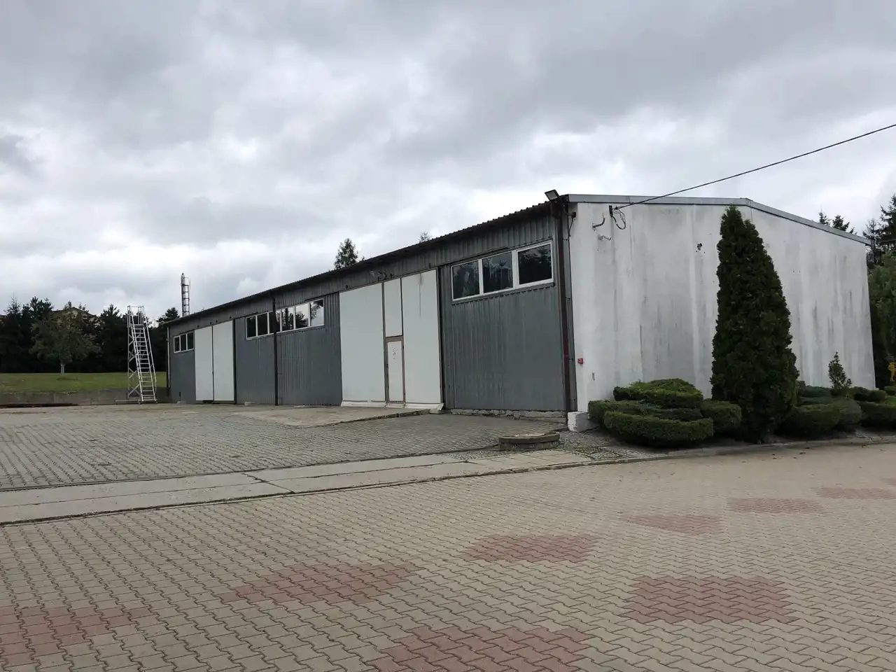 Dodatkowo na dużym podjeździe znajduje się hala magazynowa o pow. 410 m.kw pod działalność gospodarczą z doprowadzonymi mediami oraz oddzielny duży garaż z dwoma bramami i warsztatem o pow. 106 m.kw. W budynku tym od tyłu (od strony ogrodu) znajduje się nowa toaleta i pomieszczenie gospodarcze na sprzęt ogrodowy. Dodatkowy budynek gospodarczy przed domem. I dwie wiaty drewniane.