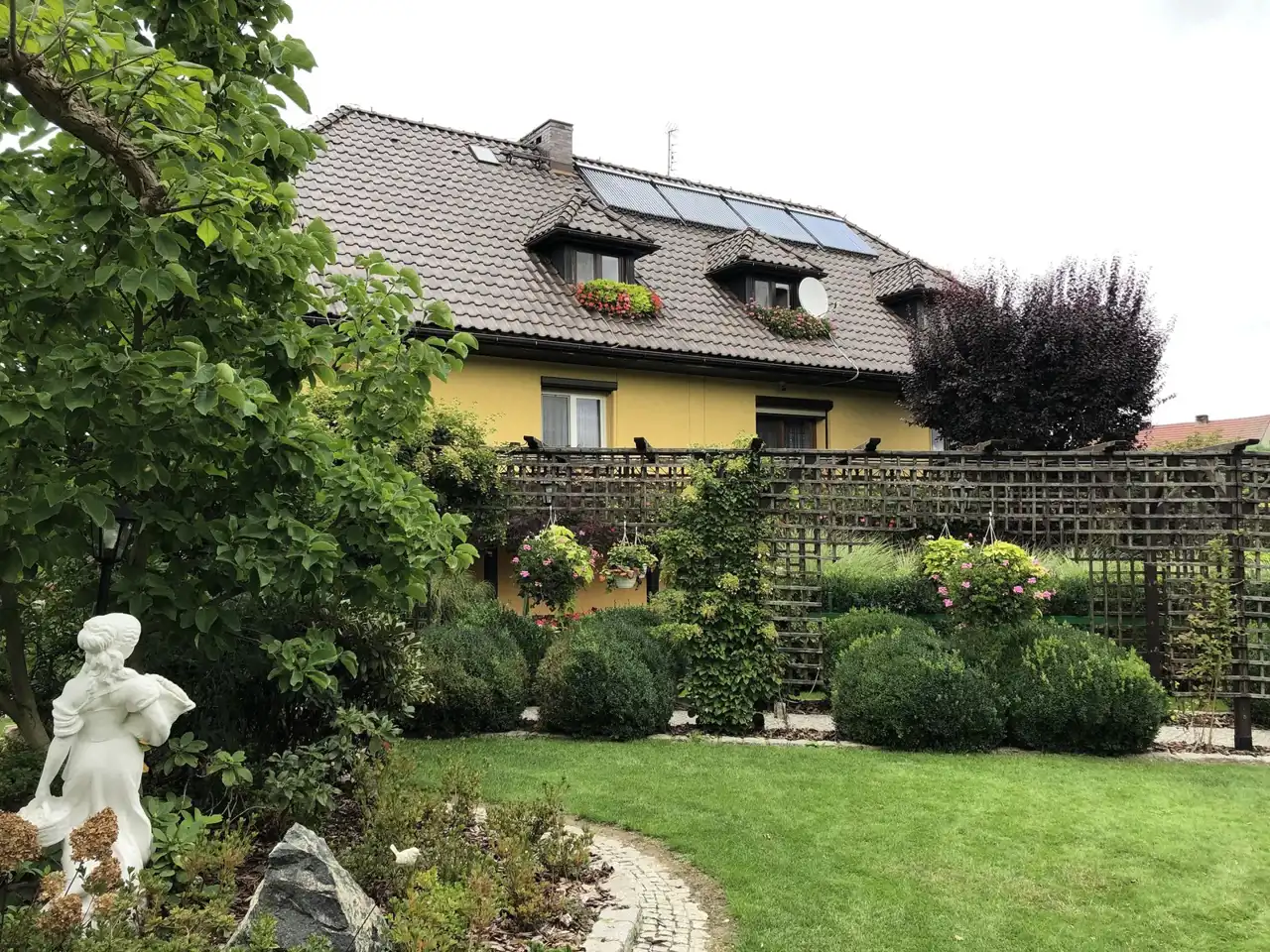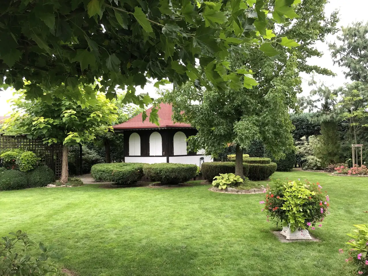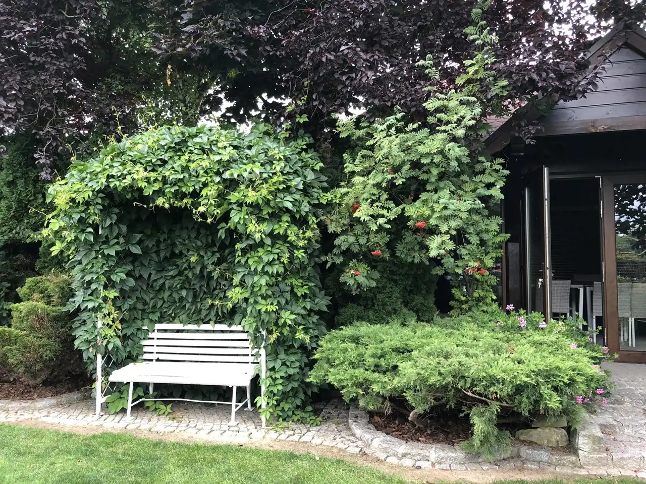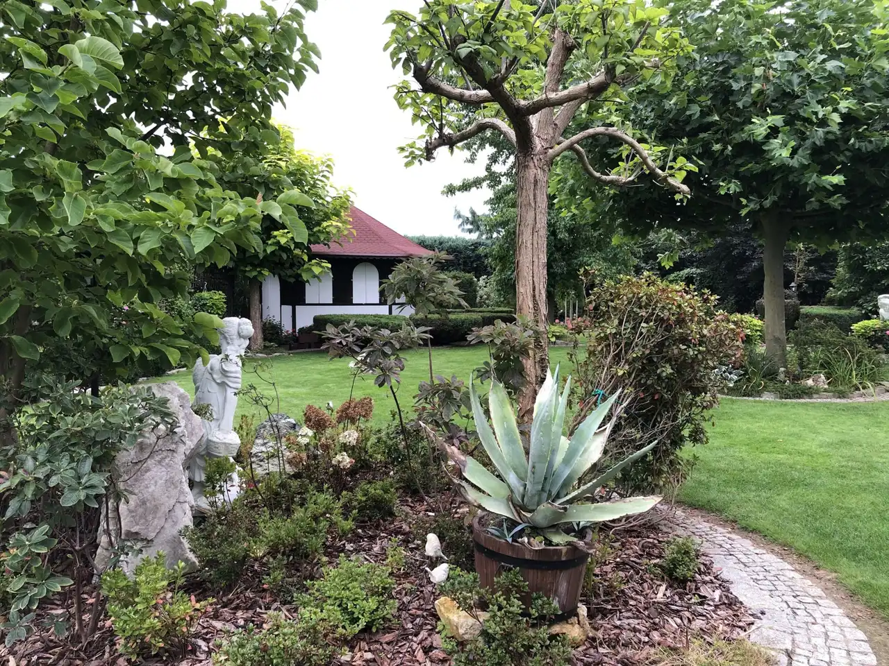 Ogród pięknie zagospodarowany z licznymi nasadzeniami, dodatkową zabudowaną kuchnią letnią i miejscem na grilla, paleniskiem. W całym ogrodzie rozprowadzone nawadnianie, woda ze studni.