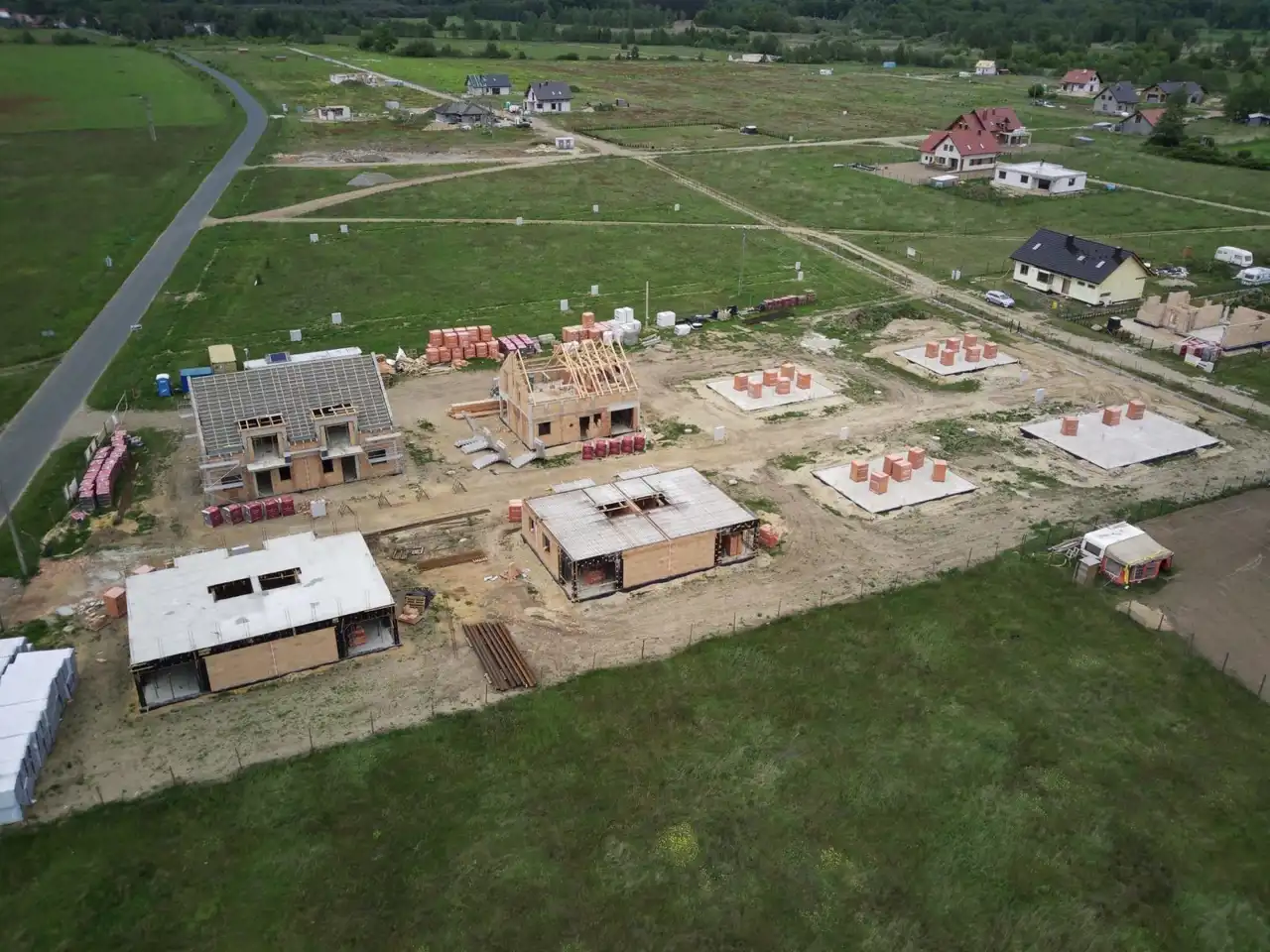Całość przedsięwzięcia obejmuje budowę 10 budynków dwulokalowych i 11 budynków jednolokalowych wraz z infrastrukturą techniczną. ODBIÓR pierwszej części budowy I kwartał 2022r.