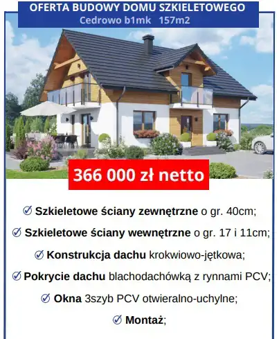 Podana cena netto wraz z montażem nie uwzględnia ceny działki i niezbędnych przyłączy.