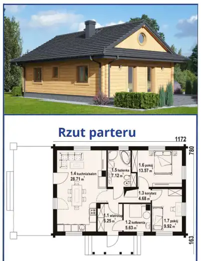 Inne propozycje projektów pokazane w zdjęciach obejmują domy o powierzchniach użytkowych od 60,5m2.