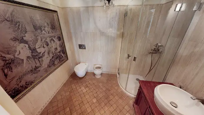 -piętro: sypialnia z garderobą i łazienką (wanna, natrysk, sauna parowa, bidet), 3 sypialnie z garderobą i łazienką.