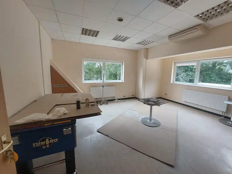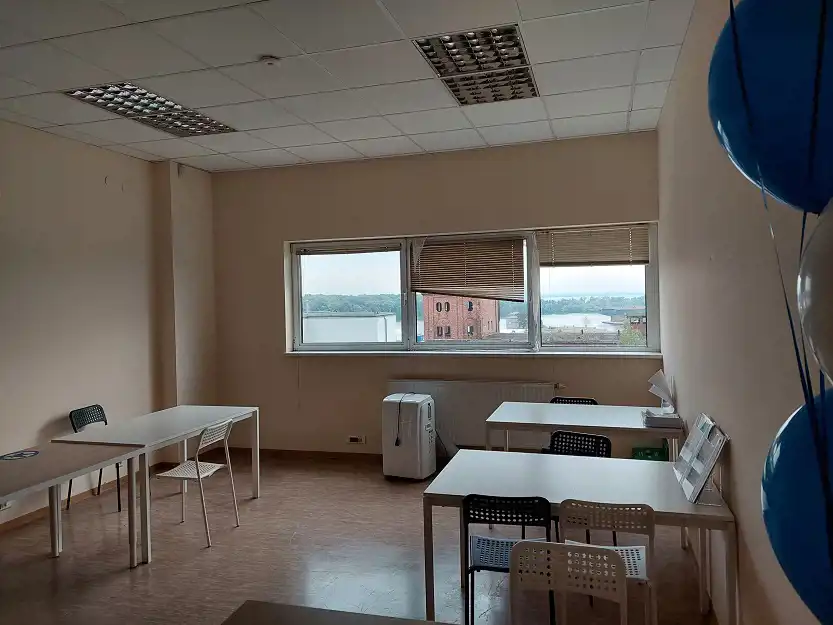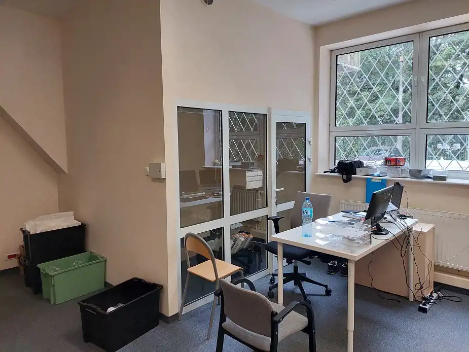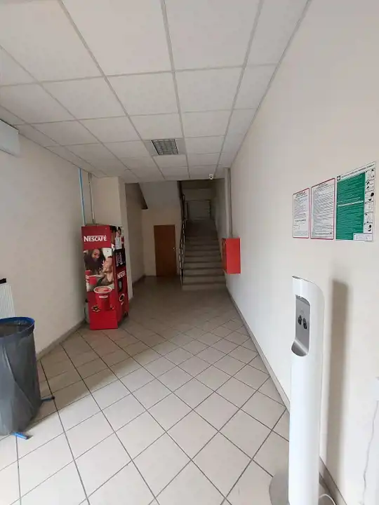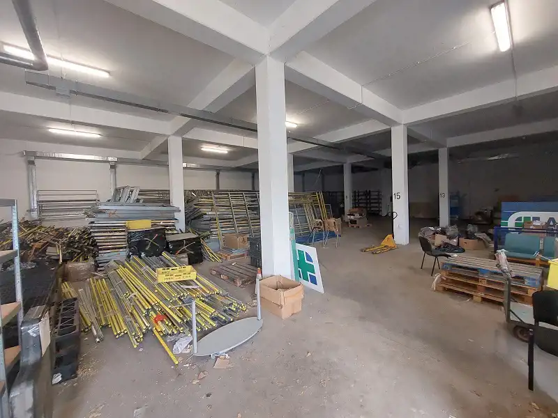 Obiekt usadowiony na pochyłości terenu co umożliwiło zrobienie dojazdu na poziomie O z powierzchni gruntu a na poziomie 1 poprzez rampy załadunkowe. W obiekcie na poziomie O są pomieszczenia magazynowo-warsztatowe o powierzchniach 422/245m2 oraz pomieszczenia socjalne, biurowe i techniczne (serwerownia) w jednej części. W drugiej części magazyny 944/895/323/313 w tym jeden magazyn chłodni. Wysokość głównych części hali magazynowej do konstrukcji dachu wynosi 6m. Na tym poziomie i w tej części są pomieszczenia socjalne, biurowe, techniczne o powierzchniach od 14 do około 90m2. W większej części jest antresola, na której pomieszczenia biurowe i socjalne. Toalety i szatnie są na każdym poziomie i w każdej części co umożliwia duże zatrudnienie bez konfliktów komunikacyjnych. Do największego magazynu dostęp z dwóch stron. Całość utrzymana i wykończona w wysokim standardzie, wszędzie w magazynach posadzki niepylące, pomieszczenia biurowe i socjalne z dobrze zabezpieczonymi podłogami wykładzinami PCV lub gresem technicznym. Budynek dobrze izolowany ogrzewany z własnej kotłowni olejowej. W budynku rozprowadzone instalacje komputerowe i alarmowe z doprowadzeniem do centralnego pomieszczenia serwerowni. Przy obiekcie place manewrowe dla dostaw oraz parkingi. Możliwość wynajęcia części obiektu. Funkcjonalnie łatwo jest podzielić całość na dwie niezależne części. Do rozważenia będzie każda propozycja potencjalnego najemcy co do wielkości wynajmowanej powierzchni, warunków i rodzaju prowadzonej działalności.