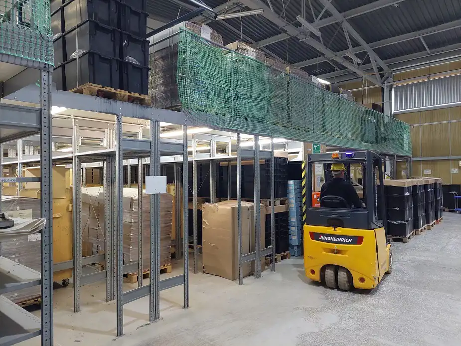 Obiekt usadowiony na pochyłości terenu co umożliwiło zrobienie dojazdu na poziomie O z powierzchni gruntu a na poziomie 1 poprzez rampy załadunkowe. W obiekcie na poziomie O są pomieszczenia magazynowo-warsztatowe o powierzchniach 422/245m2 oraz pomieszczenia socjalne, biurowe i techniczne (serwerownia) w jednej części. W drugiej części magazyny 944/895/323/313 w tym jeden magazyn chłodni. Wysokość głównych części hali magazynowej do konstrukcji dachu wynosi 6m. Na tym poziomie i w tej części są pomieszczenia socjalne, biurowe, techniczne o powierzchniach od 14 do około 90m2. W większej części jest antresola, na której pomieszczenia biurowe i socjalne. Toalety i szatnie są na każdym poziomie i w każdej części co umożliwia duże zatrudnienie bez konfliktów komunikacyjnych. Do największego magazynu dostęp z dwóch stron. Całość utrzymana i wykończona w wysokim standardzie, wszędzie w magazynach posadzki niepylące, pomieszczenia biurowe i socjalne z dobrze zabezpieczonymi podłogami wykładzinami PCV lub gresem technicznym. Budynek dobrze izolowany ogrzewany z własnej kotłowni olejowej. W budynku rozprowadzone instalacje komputerowe i alarmowe z doprowadzeniem do centralnego pomieszczenia serwerowni. Przy obiekcie place manewrowe dla dostaw oraz parkingi. Możliwość wynajęcia części obiektu. Funkcjonalnie łatwo jest podzielić całość na dwie niezależne części. Do rozważenia będzie każda propozycja potencjalnego najemcy co do wielkości wynajmowanej powierzchni, warunków i rodzaju prowadzonej działalności.