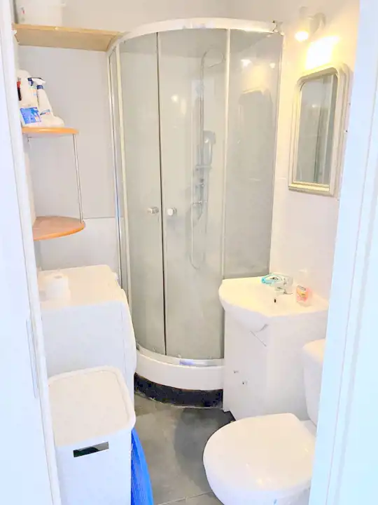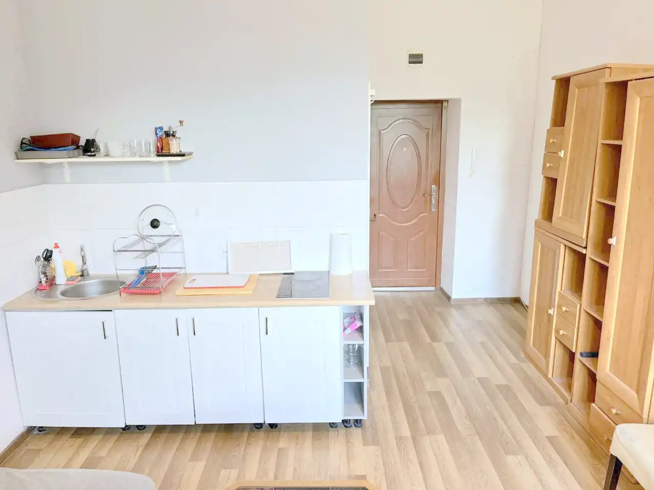 Lokal składa się z pokoju z aneksem kuchennym i łazienki.