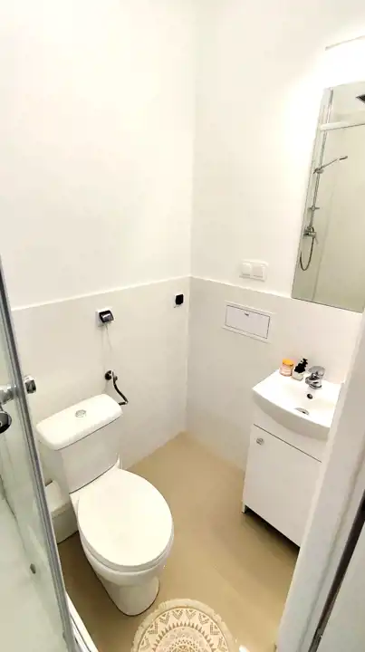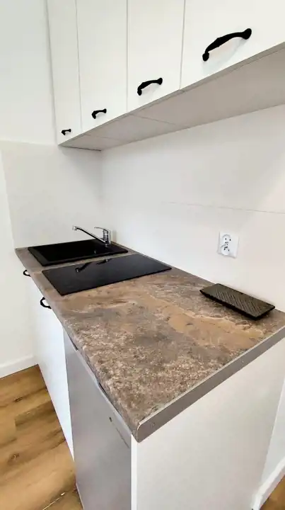 W trakcie remontu wymieniono instalacje, ściany gładzone. Okno PCV z wystawą na jedną stronę. Ogrzewanie i ciepła woda z sieci miejskiej nieopomiarowane. W łazience kabina natryskowa, sedes, umywalka. Podłogi w łazience z terakoty, pozostałe - panele. Drzwi wejściowe antywłamaniowe. Aneks kuchenny z nową zabudową na wymiar i nowym sprzętem AGD.