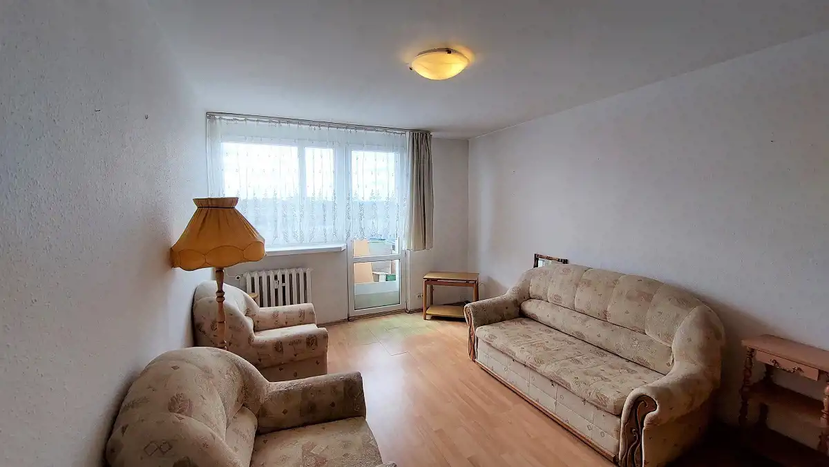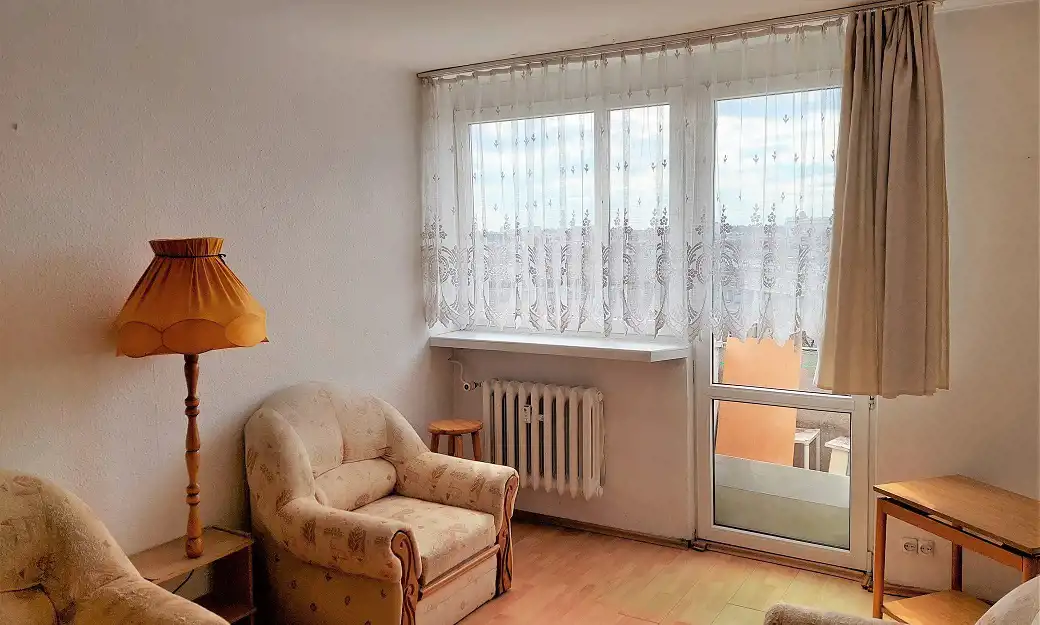 Lokal jest w stanie do remontu i składa się z pokoi 16/9m2, oddzielnej kuchni bez okna 5m2, łazienka z WC 4m2, hol 3m2, malutki balkon i przynależnej piwnicy.