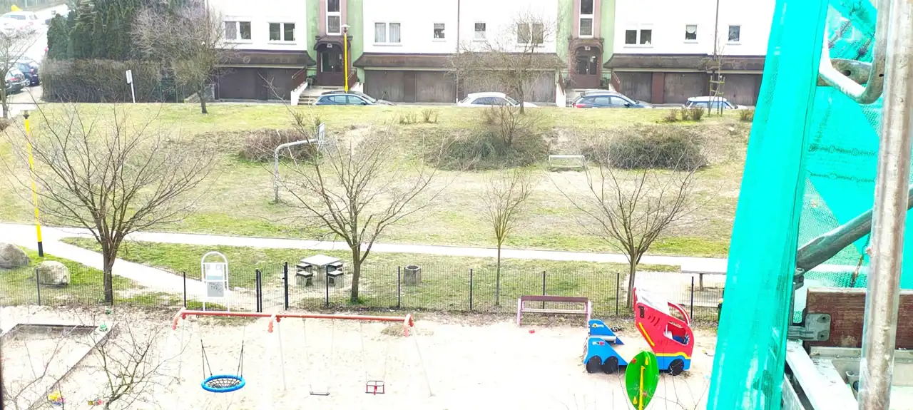 - 3 pokoi,w tym salonu z dużym balkonem i widokiem na zieloną strefę, plac zabaw
