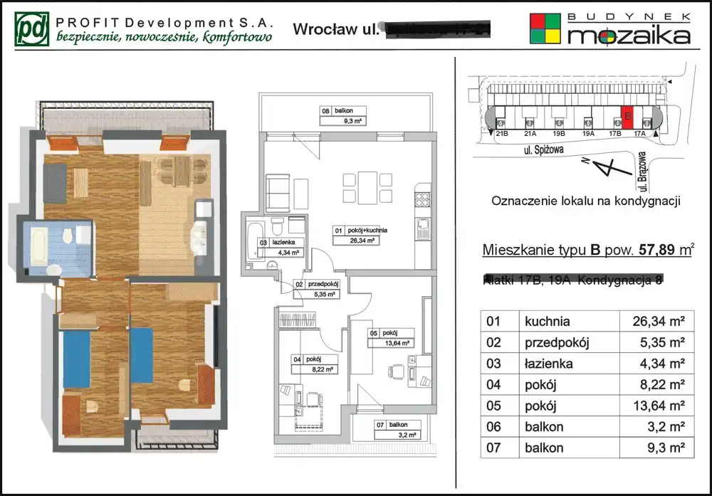 - Charakterystyka mieszkania 57.89 m2, 3 pokoje, bardzo dobry