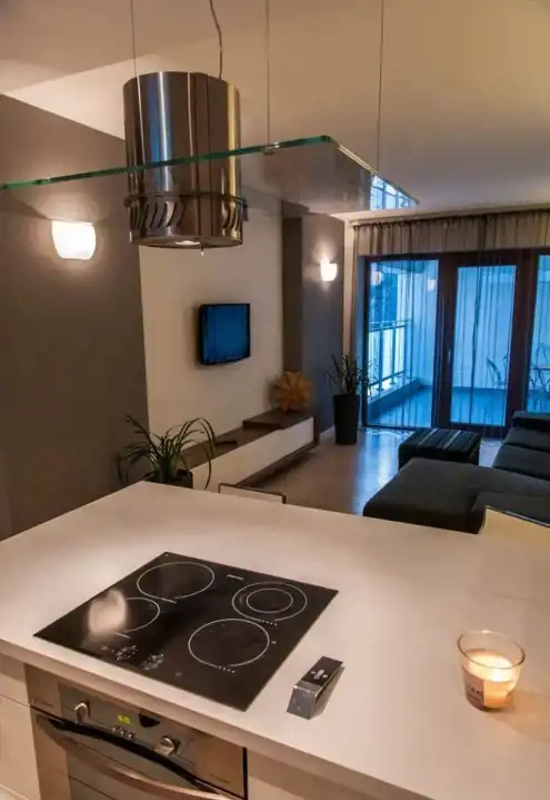 Na podłogach położone są panele. Na ścianach położona jest gładź. Łazienka gres i terakota. Kuchnia w zabudowie wraz ze sprzętem agd (płyta indukcyjna, okap, zmywarka, piekarnik elektryczny, lodówka, zamrażarka). Wyposażenia widoczne na zdjęciach w cenie nieruchomości.