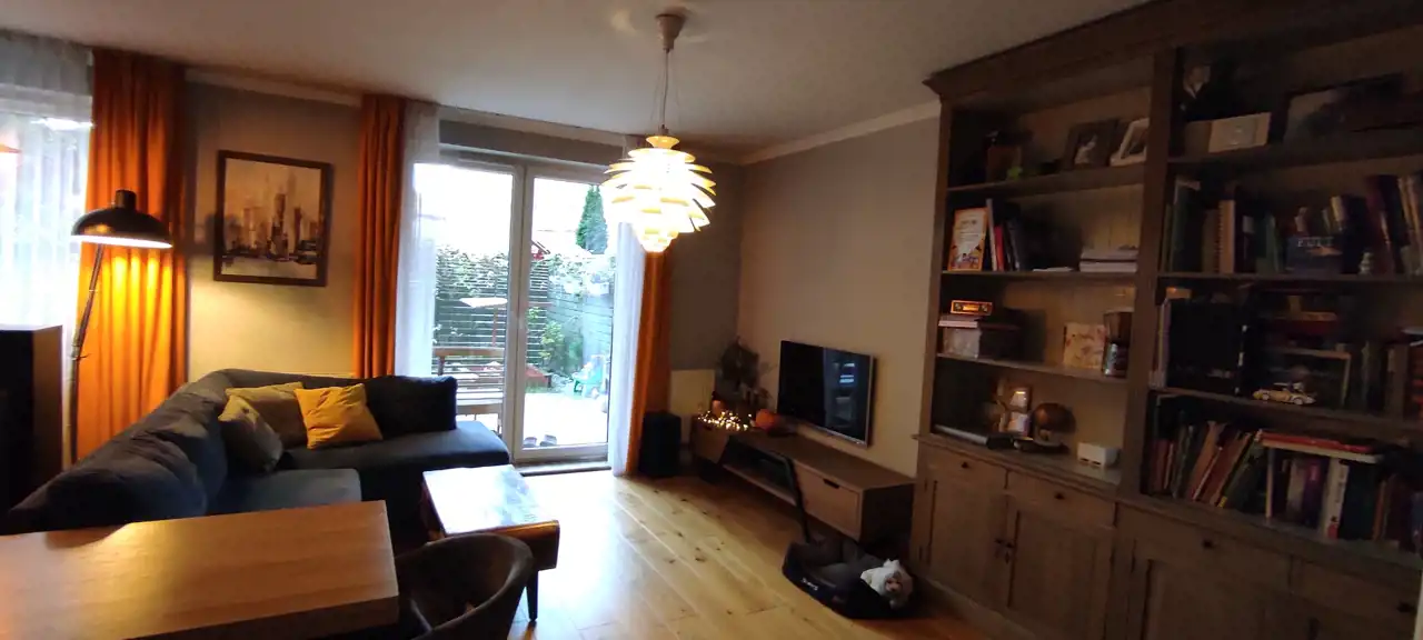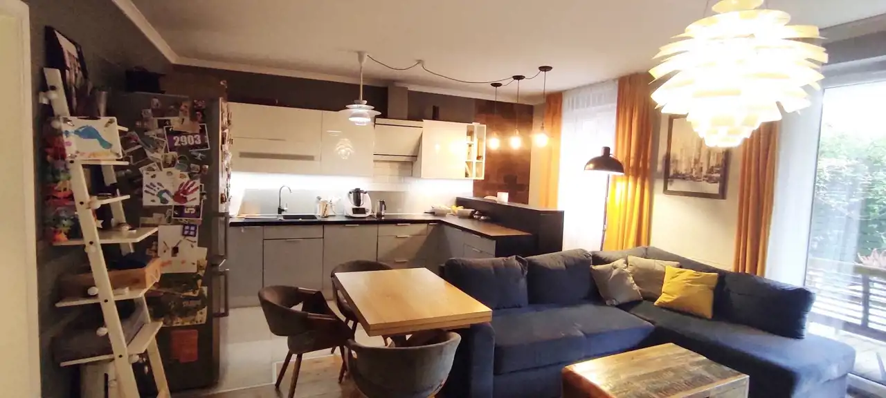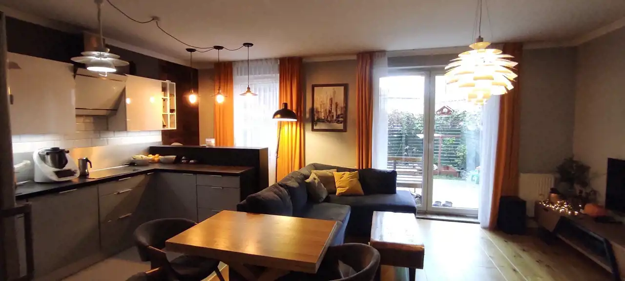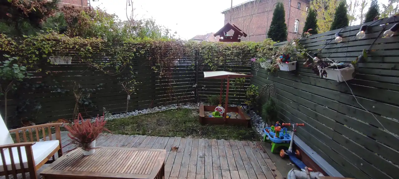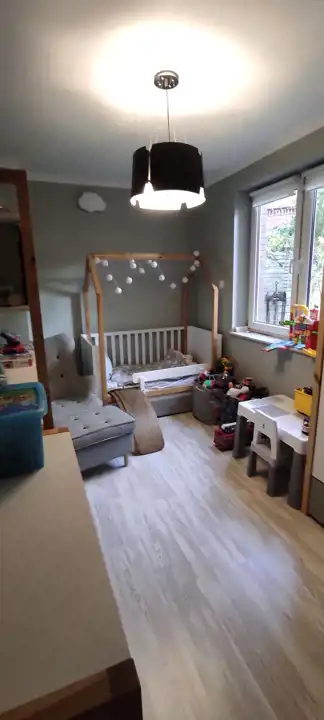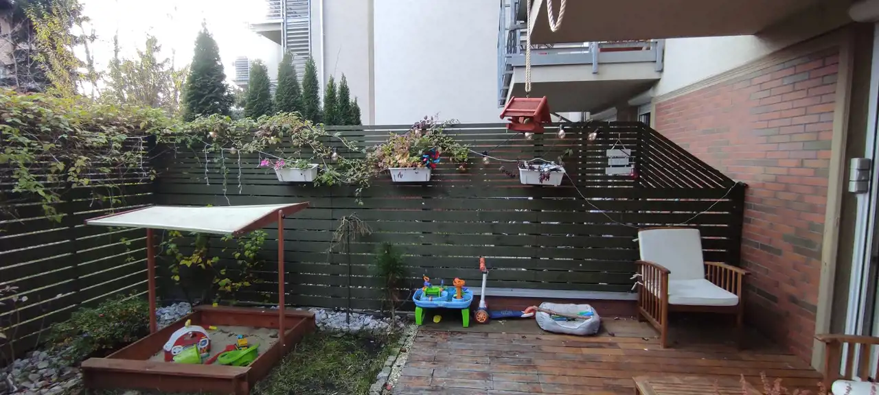 Do sprzedania przestronne i praktycznie urządzone mieszkanie o powierzchni 66,33 m.kw, z dwoma ogródkami o łącznej powierzchni 70 m2, usytuowane na parterze w niskim bloku z 2014r. w Wrocław / Krzyki/ Klecina. Mieszkanie składa się z trzech pokoi, kuchni, łazienki z wc, przedpokoju i pomieszczenia gospodarczego. Kuchnia połączona z salonem o pow 26,51 m2. Meble w zabudowie wraz ze sprzętem agd: płyta indukcyjna, piekarnik elektryczny, kuchenka mikrofalowa, okap, zmywarka, lodówka, zamrażarka. W salonie duża drewniana, dębowa szafa/witryna na książki, ręcznie robiona drewniana dębowa szafka pod tv na zamówienie, drewniany stół i drewniane krzesła oraz retro stoliczek, a także obrazy na płótnie. Na podłodze w salonie deska dębowa. Z salonu wyjście do jednego z dwóch przynależnych ogródków (wyprowadzone podlewanie oraz oświetlenie). W ogródku znajdują się drewniane meble oraz piaskownica. W mieszkaniu jest też schowek z dużą ilością półek, pralką, koszami na pranie, dużym regałem. W sypialni o pow 12,98 m2 znajduje się łóżko oraz przestronna szafa z lustrami. Na podłodze panele. Z sypialni wyjście do drugiego ogródka. W nim dodatkowo chatka drewniana 2x2m na przybory ogrodnicze. Pokój dziecka o pow 9,52 m2 umeblowany, na podłodze panele. W łazience o pow 4,88 m2 wanna oraz deszczownica.