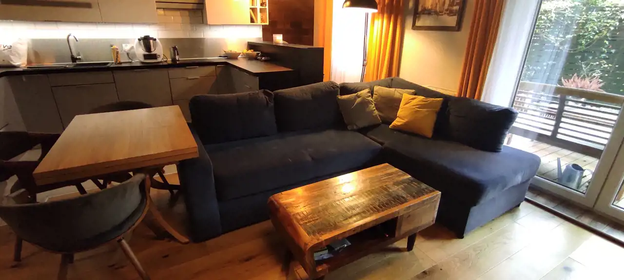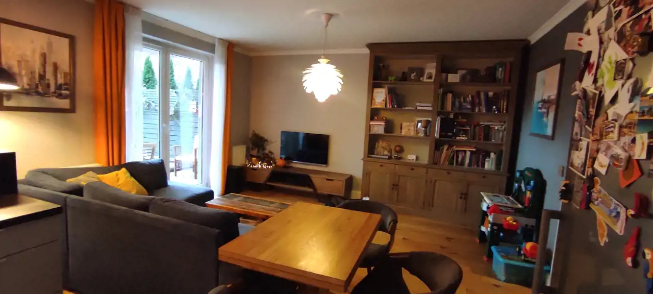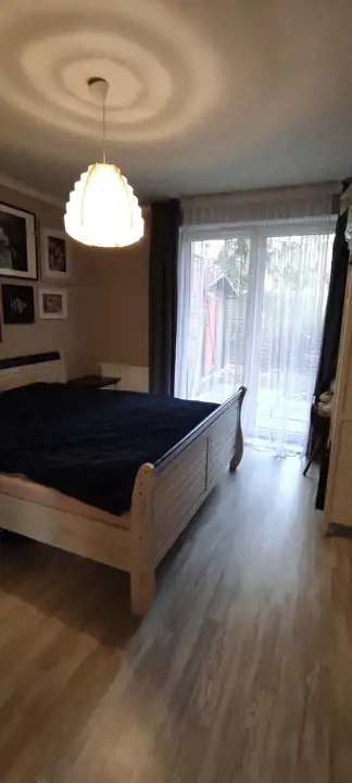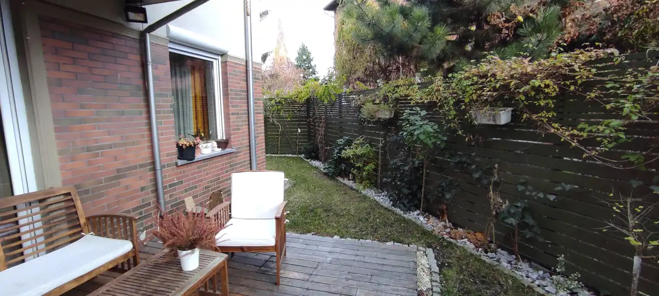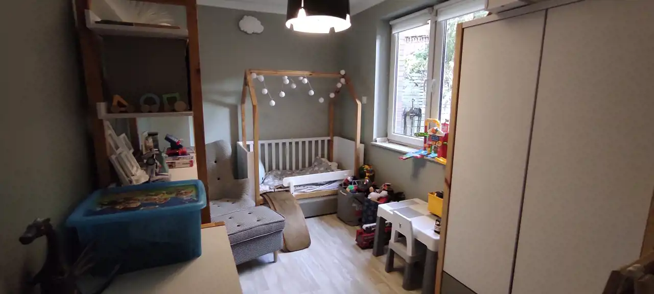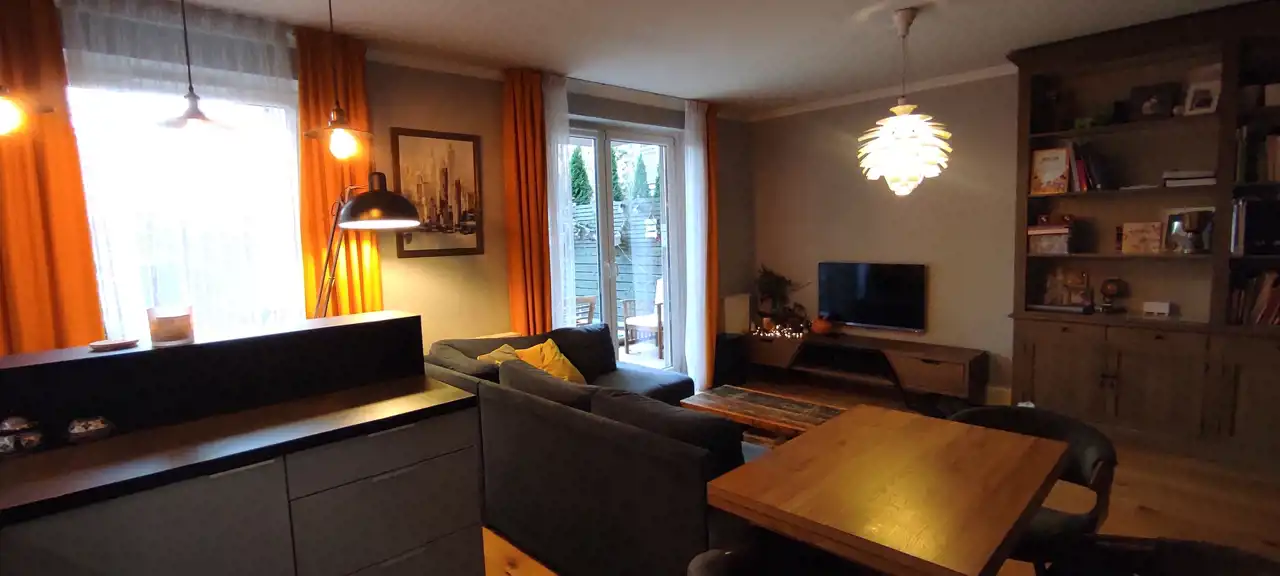 Do sprzedania przestronne i praktycznie urządzone mieszkanie o powierzchni 66,33 m.kw, z dwoma ogródkami o łącznej powierzchni 70 m2, usytuowane na parterze w niskim bloku z 2014r. w Wrocław / Krzyki/ Klecina. Mieszkanie składa się z trzech pokoi, kuchni, łazienki z wc, przedpokoju i pomieszczenia gospodarczego. Kuchnia połączona z salonem o pow 26,51 m2. Meble w zabudowie wraz ze sprzętem agd: płyta indukcyjna, piekarnik elektryczny, kuchenka mikrofalowa, okap, zmywarka, lodówka, zamrażarka. W salonie duża drewniana, dębowa szafa/witryna na książki, ręcznie robiona drewniana dębowa szafka pod tv na zamówienie, drewniany stół i drewniane krzesła oraz retro stoliczek, a także obrazy na płótnie. Na podłodze w salonie deska dębowa. Z salonu wyjście do jednego z dwóch przynależnych ogródków (wyprowadzone podlewanie oraz oświetlenie). W ogródku znajdują się drewniane meble oraz piaskownica. W mieszkaniu jest też schowek z dużą ilością półek, pralką, koszami na pranie, dużym regałem. W sypialni o pow 12,98 m2 znajduje się łóżko oraz przestronna szafa z lustrami. Na podłodze panele. Z sypialni wyjście do drugiego ogródka. W nim dodatkowo chatka drewniana 2x2m na przybory ogrodnicze. Pokój dziecka o pow 9,52 m2 umeblowany, na podłodze panele. W łazience o pow 4,88 m2 wanna oraz deszczownica.